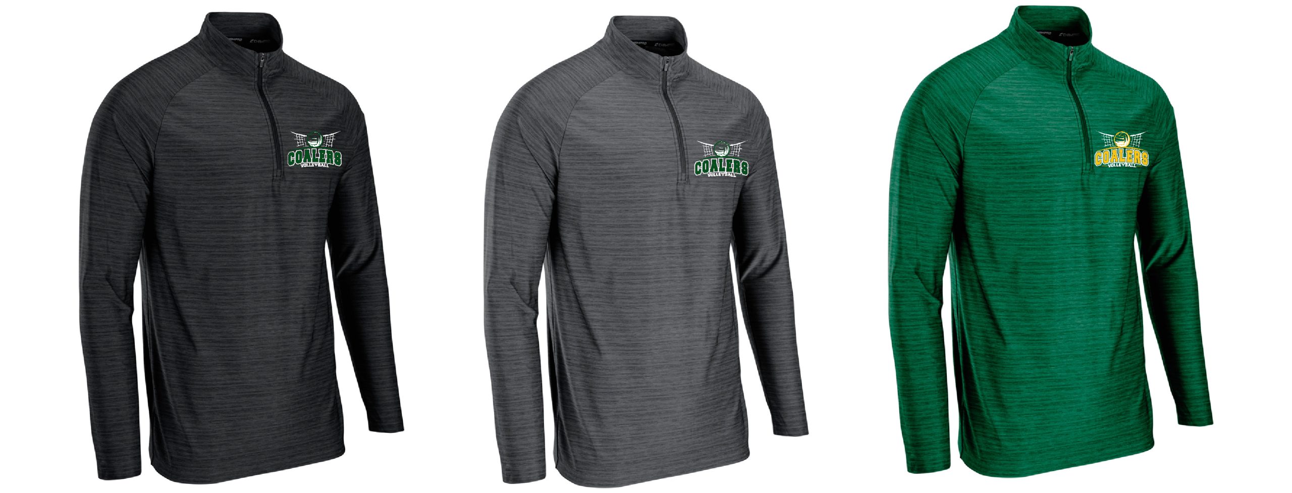 - Quarter-zip pullover style with self fabric mock neck collar